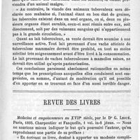 0189 - Page 190 - Revue des livres. Rapport sur les maladies contagieuses des animaux., observées en 1894 dans le département de la Seine. Traitement rationnel de la phtisie. Traité d'hygiène militaire