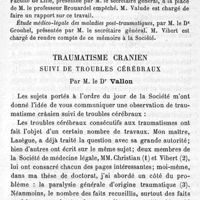 0352 - Page 353 - Société de médecine légale de France. Séance du 10 février 1896. Présidence de M. Constant, vice- président. Traumatisme crânien suivi de troubles cérébraux. Par M. le Dr Vallon