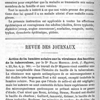 0377 - Page 378 - Variétés. Prophylaxie des maladies contagieuses dans les écoles / Revue des journaux. Action de la lumière solaire sur la virulence des bacilles de la tuberculose