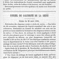 0442 - Page 443 - Comité consultatif d'hygiène de France. Séance du 30 mars 1896 / Conseil de salubrité de la Seine. Séance du 20 mars 1896. Fabrication des chapeaux vernis à cloche de carton