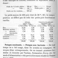 0198 - Page 198 - Mémoires originaux. Les conserves de légumes et de viandes en usage dans les principales armées. Par A. Balland. France. Conserve pour potage dit "potage national". Conserve de purée de légumes