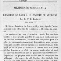 0289 - Page 289 - Mémoires originaux. L'hygiène de Lyon à la société de médecine. Par le Dr X. Delore
