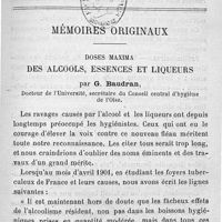 0386 - Page 386 - Mémoires originaux. Doses maxima des alcools, essences et liqueurs. Par G. Baudran. Préliminaires