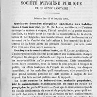 0455 - Page 455 - Expertises médico-légales concernant l'empoisonnement. Par M. le professeur P. Brouardel. 6° Expériences physiologiques / Société d'hygiène publique et de génie sanitaire. Séance des 12 et 20 juin 1901. Quelques données d'hygiène spéciales aux habitations à bon marché. Des foyers à combustion lente. La lutte contre la tuberculose ; maladie populaire, par le sanatorium, établissement de cure et école de prophylaxie
