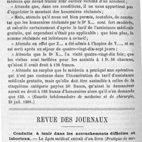 0460 - Page 460 - Revue des journaux. Conduite à tenir dans les accouchements difficiles et laborieux. La consommation des boissons depuis la réforme de la loi
