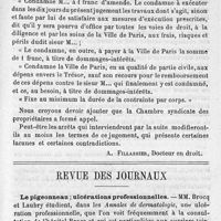 0563 - Page 563 - Variétés. La loi du 10 juillet 1894 sur le "tout à l'égout" et le tribunal de simple police / Revue des journaux. Le pigeonneau ; ulcérations professionnelles