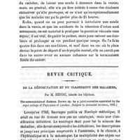 0213 - Page 213 - Revue critique. De la dénomination et du classement des maladies. Par M. Rendu.. / Revue générale. Chirurgie. De la ligature et des anévrysmes de l'artère sous-clavière, par Wilhelm Koch. (Arch. für klinische Chirurgie ; Bd. X, Heft 1, p. 195.)
