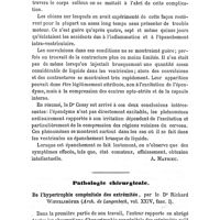 0596 - Page 596 - Revue générale. Pathologie médicale. Etude expérimentale et clinique sur les ventricules latéraux, par le Dr Cossy, th. de Paris, 1879. / Pathologie chirurgicale. De l'hypertrophie congénitale des extrémités, par le Dr Richard Wittelshöfer (Arch. de Langenbeck, vol. XXIV, fasc. I)