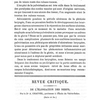 0070 - Page 70 - Mémoires originaux. Des lésions du larynx chez les tuberculeux. Par le Dr Joal (du Mont-Dore). (Suite et fin.) / Revue critique. De l'élongation des nerfs. Par le Dr A. Chauvel... (Suite et fin.)