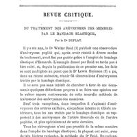 0509 - Page 509 - Variétés. Congrès international de Londres. Section de chirurgie... Note sur le traitement des anévrysmes par la bande élastique d'Esmarch, par Edward Bellamy / De la valeur comparative des résections hâtives et des résections tardives dans les diverses affections articulaires, par M. Ollier