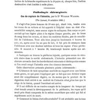 0613 - Page 613 - Revue générale. Pathologie chirurgicale. Cas de rupture de l'intestin, par le Dr William Walker. (The Lancet, 8 octobre 1881.) / Recherches critiques et expérimentales sur la suture nerveuse et la régénéraiton des nerfs, par L. Wolberg. (Centralblatt f. chirurgie, n° 38, 1881.)