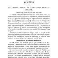 0377 - Page 377 - Variétés. Congrès international de Londres. Section de médecine... De la « bactérurie », par Wm. Roberts / Détermination de l'activité de la sécrétion biliaire dans différentes conditions morbides du foie, par le Dr Lépine, de Lyon / Physiologie et pathologie de l'estomac, par M. le Dr M. Leven