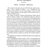 0099 - Page 99 - Revue générale. Pathologie médicale. Catarrhe du canal de Sténon et tumeur salivaire périodique consécutive, par Stiller (Wien. med. Woch., n° 19, 1881). / Embolie des artères de la moelle lombaire, par N. Weiss. (Wien. med. Woch, n° 42, 1882)