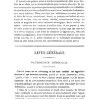 0110 - Page 107 - Revue générale. Pathologie médicale. Clinical remarks on softening of the crus carebri and syphilitic disease of the cerebral arteries, par le Dr Syer Bristowe. (Lancet, 7 juillet 1883) / A case of myxodema with a consideration of the neurotic origin of the disease, par Allan Melane Hamilton. (Med. Record, décembre 1882)