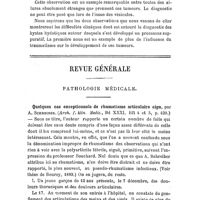 0616 - Page 613 - Revue générale. Pathologie médicale. Quelques cas exeptionnels de rhumatisme articulaire aigu, par A. Schreiber. (Arch. f. klin Medic., Bd. XXXI, Hft 4 et 5, p. 420.) / Contribution à l'étude des synostoses de l'atlas, par M. Sommer. (Arch. f. Pathol., Anat. u. Physiol., Bd XCIV, Hft 1, s. 12, 1883.)