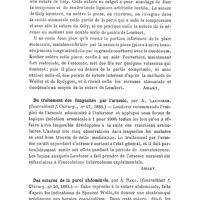 0622 - Page 619 - Revue générale. Pathologie chirurgicale. Contribution au manuel opératoire de la suture de l'estomac et de l'intestin, par Th. Kocher. (Centralblatt f. Chirurg., n° 45, 1883.) / Du traitement des fongosités par l'arsenic, par A. Lauderer. ((Centralblatt f. Chirurg., n° 45, 1883.) f. Chirurg., n° 47, 1883.) / Des sutures de la paroi abdominale, par A. Bako. (Centralblatt f. Chirurg., n° 50, 1883.)