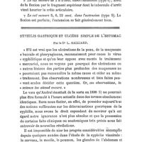 0071 - Page 71 - Mémoires originaux. Syphilis gastrique et ulcère simple de l'estomac. Par le Dr L. Galliard. 1° Faits cliniques : gastropathies traitées avec succès par le mercure et l'iodure ; pas d'autopsie. / 2° Faits anatomiques contestables : lésions gastriques chez des syphilitiques