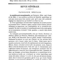 0105 - Page 105 - Revue générale. Pathologie médicale. La syphilis post-conceptionnelle, par Neumann (Wien. med. Presse, n° 29, 1885). / La toux du trijumeau, par Wille (Deutsche med. Woch., n° 16, 1885)