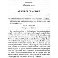0130 - Page 129 - Mémoires originaux. Traitement chirurgical des luxations en arrière, récentes et irréductibles, des doigts sur les métacarpiens. Par Ad. Jalaguier..