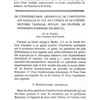 0188 - Page 187 - Mémoires originaux. De l'hystérectomie abdominale, de l'amputation sus-vaginale du col de l'utérus et de l'hystérectomie vaginale, suivant les procédés du professeur Schroeder (de Berlin). Par M. Clado... 1° Hystérectomie abdominale / 2° Amputation sus-vaginale du col de l'utérus