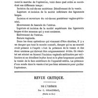 0198 - Page 197 - Mémoires originaux. De l'hystérectomie abdominale, de l'amputation sus-vaginale du col de l'utérus et de l'hystérectomie vaginale, suivant les procédés du professeur Schroeder (de Berlin). Par M. Clado... 2° Amputation sus-vaginale du col de l'utérus / Revue critique. De l'urémie. Par C. Giraudeau. (Suite et fin.)