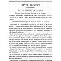 0091 - Page 91 - Revue critique. Étude sur l'inflammation. Par A. Brault... (A suivre.) / Revue clinique. Revue clinique médicale. Hôpital Saint-Antoine. Service du Dr Tapret. Pleurésie purulente. Pneumothorax après thoracentèse. Un seul lavage de la plèvre à l'eau boriquée saturée tiède (38°). Guérison. (Observation recueillie par M. Boulay...)