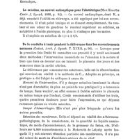 0107 - Page 107 - Revue générale. Pathologie chirurgicale. De la conduite à tenir pendant la délivrance dans les accouchements normaux (Crédé. Arch. f. Gynaek. T. XXXII, p. 96). / Craniotomie. — Accouchement prématuré et opération césarienne. — Leur indication dans les bassins rétrécis (Wyder. Arch. f. Gynaek. T. XXXII, p. 1)