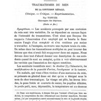 0697 - Page 697 - Revue critique. Traumatismes du rein de la contusion rénale. Clinique. — Critique. — Expérimentation. Par Tuffier... (Suite et fin.)