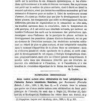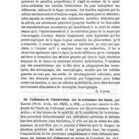 0104 - Page 104 - Revue générale. Pathologie médicale. De l'influence de l'nnervation sur la croissance des tissus, par Samuel (Virch. Arch. bd. CXIII, p. 272). / Pathologie chirurgicale. Anus contre nature avec oblitération du bout périphérique de l'intestin. Suture intestinale. Guérison, par Kaufmann (Deutsche Zeitsch. f. chir., 1888, t. 28, fasc. 3)