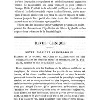 0096 - Page 96 - Revue clinique. Revue clinique chirurgicale. Hôpital Tenon. — Service de M. le Dr Blum. (Observation recueillie par M. Chevalet...) / Revue générale. Pathologie médicale. Le traitement de l'hydrocéphalie chronique par la ponction, par Mosler (Soc. méd. de Greifswald, 5 mai 1888.)