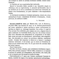 0481 - Page 481 - Revue générale. Pathologie médicale. Sarcome primitif du coeur, par Mennig (Soc. med. de Hambourg, 10 juillet 1888). / Cancer primitif du pancréas, par Seebohm (Deutsche med. Woch n° 38, 1888)