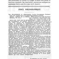 0383 - Page 383 - Index alphabétique. De l'ulcère simple de l'oesophage, par le Dr Berrez. (Thèse, Paris, 1888.) / La masse de Teichmann, par le Dr F. Lejars, prosecteur à la Faculté / Mémoires d'anthropologie de Paul Broca, tome V, publié avec une Introduction et des notes par M. le Dr S. Pozzi. (Reinwald, 1888.) / Du purpura hémorrhagique primitif ou purpura infectieux primitif, par le Dr Martin de Gimard