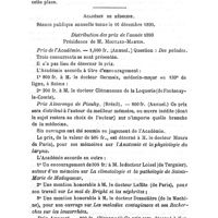 0123 - Page 123 - Variétés. Académie de médecine. Séance publique annuelle tenue le 16 décembre 1890. Distribution des prix de l'année 1890. Présidence de M. Moutard-Martin. Prix Portal. / Prix Pourat. / Prix Saint-Lager. / Prix Perron