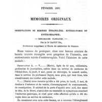0129 - Page 129 - Mémoires originaux. Observations de hernies étranglées, entérectomie et entérorraphie. — Remarques cliniques. — Par le Dr Dayot fils..