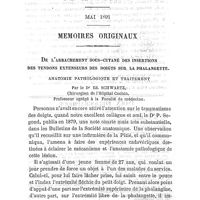 0513 - Page 513 - Mémoires originaux. De l'arrachement sous-cutané des insertions des tendons extenseurs des doigts sur la phalangette. Anatomie pathologique et traitement. Par le Dr Ed. Schwartz..