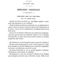 0005 - Page 5 - Mémoires originaux. Opérations chez les vieillards. Par le Dr Albert Blum