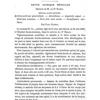 0101 - Page 101 - Revue clinique. Revue clinique médicale. Service de M. le Dr Hanot. Hôpital Saint-Antoine. Artério-sclérose généralisée. — Alcoolisme. — Asystolie aiguë. — Delirium tremens. — Gros foie avec ascite. — Insuffisance aortique. Par Paul Gastou