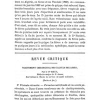 0319 - Page 319 - Mémoires originaux. Note sur six cas d'impaludisme ancien réveillé par la grippe. Par le Dr René Grenier / Revue critique. Traitement chirurgical des calculs biliaires. Par le Dr Sieur... (Suite et fin.)