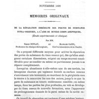 0518 - Page 518 - Mémoires originaux. De la réparation immédiate des pertes de substance intra-osseuses, à l'aide de divers corps aseptiques. (Étude expérimentale et clinique). Par MM. Simon Duplay... et Maurice Cazin... 1° Partie expérimentale