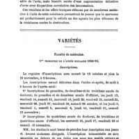 0632 - Page 632 - Variétés. Faculté de médecine. 1er trimeste de l'année scolaire 1892-93. Inscriptions. / Consignations pour examens / Travaux pratiques
