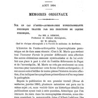 0129 - Page 129 - Mémoires originaux. Sur un cas d'ostéo-arthropathie hypertrophiante pneumique traitée par des injections de liquide pneumique. Par MM. A. Demons... et W. Binaud..
