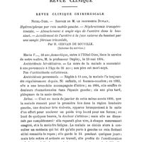 0210 - Page 210 - Revue clinique. Revue clinique chirurgicale. Hôtel-Dieu. — Service de M. le professeur Duplay. Hydronéphrose par rein mobile gauche. — Néphrectomie transpéritonéale. — Abouchement à angle aigu de l'uretère dans le bassinet. — Accollement de l'uretère à la face externe du bassinet par une sangle fibreuse très solide. Par M. Gervais de Rouville..