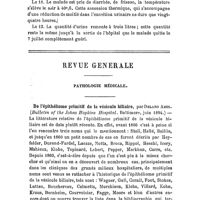 0470 - Page 470 - Revue clinique. Revue clinique chirurgicale. Hôpital Saint-Antoine. (Service de M. Blum.) (Observation recueillie par M. Guinard...) Contusion du rein. — Hématurie persistante. — Néphrectomie par morcellement. — Guérison / Revue générale. Pathologie médicale. De l'épithéliome primitif de la vésicule biliaire, par Delano Ames. (Bulletin of the Johns Hopkins Hospital. Baltimore, juin 1894.)