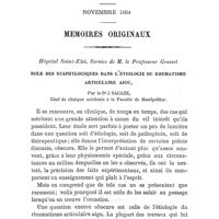 0523 - Page 523 - Mémoires originaux. Hôpital Saint-Eloi, Service de M. le Professeur Grasset. Rôle des staphylocoques dans l'étiologie du rhumatisme articulaire aigu. Par le Dr J. Sacaze... Observation I. Rhumatisme articulaire aigu avec rechute. Douleurs précédées par l'apparition d'une plaie septique du pied, où l'examen bactériologique découvre le staphylocoque blanc à l'état pur / Observation II. Hypertrophie des amygdales. Poussée d'angine suivie d'une attaque de rhumatisme articulaire aigu