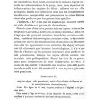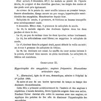0525 - Page 525 - Mémoires originaux. Hôpital Saint-Eloi, Service de M. le Professeur Grasset. Rôle des staphylocoques dans l'étiologie du rhumatisme articulaire aigu. Par le Dr J. Sacaze... Observation III. Hypertrophie des amygdales ; angines fréquentes. Rhumatisme articulaire aigu / Observation IV. Hypertrophie des amygdales. Poussée d'angine accompagnée de manifestations rhumatismales