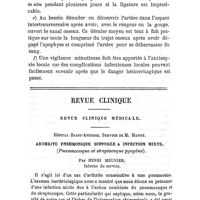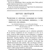 0598 - Page 598 - Revue critique. Traumatismes et anévrysmes traumatiques de l'artère vertébrale et leur traitement chirurgical. — Une observation avec guérison. Par Rudolph Matas M. D. (de la Nouvelle-Orléans)... Traduit par le Dr Tussau, de Mâcon / Revue clinique. Revue clinique médicale. Hôpital Saint-Antoine. Service de M. Hanot. Arthrite pneumonique suppurée à infection mixte. (Pneumocoque et streptocoque pyogène). Par Henri Meunier..
