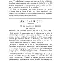 0724 - Page 724 - Mémoires originaux. Des paralysies laryngées dans la fièvre typhoïde. Par les Drs M. Boulay et H. Mendel... Traitement / Revue critique. Sur la maladie de Thomsen. Par Susskand (Zeitschrift für klinische Medicin, 25e vol., p. 91, Berlin, 1894.)