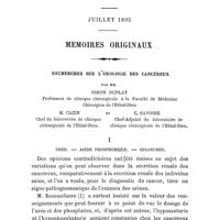 0005 - Page 5 - Mémoires originaux. Recherches sur l'urologie des cancéreux. Par MM. Simon Duplay... M. Cazin... et C. Savoire..