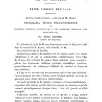 0077 - Page 77 - Revue clinique. Revue clinique médicale. Hôpital Saint-Antoine. — Service de M. Hanot. Phlegmatia triple polymicrobienne et pleurésie purulente, consécutive à une bronchite chronique avec bronchectasie. Par Henri Meunier..