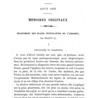 0142 - Page 142 - Mémoires originaux. Traitement des plaies pénétrantes de l'abdomen. Par Chaput / D'un cas de néphrite syphilitique héréditaire tardive. Par M. Léopold Lévi..